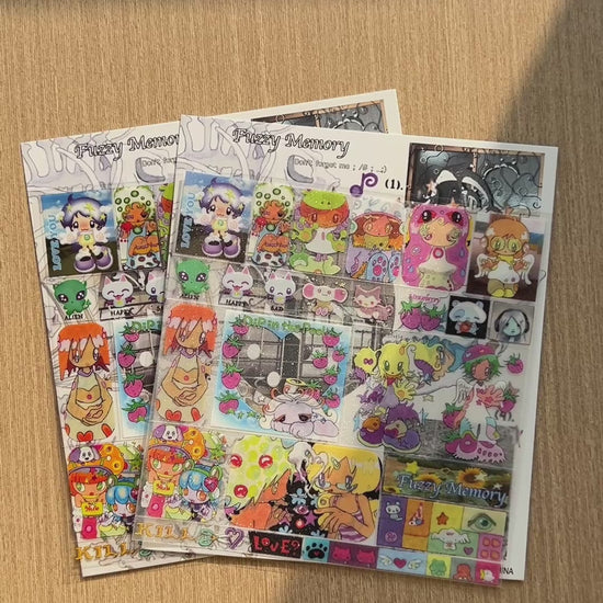 A 4.7 × 4.7 in (12 × 12 cm) sticker featuring a fine glitter film with a frosted texture on the transparent areas. The glossy finish highlights the pattern with clear and vivid detail.